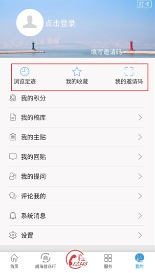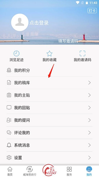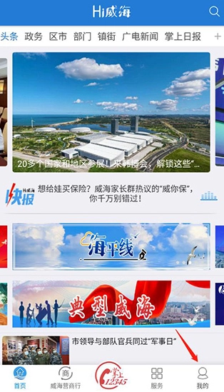 1、点击我的,进入Hi威海首页后,点击【我的】。