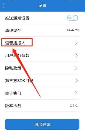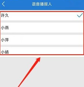 3、点击语音播报人,进入设置界面后,再次点击【语音播报人】。