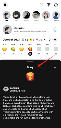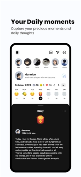 1、支持每日撰写日记,用户可通过表情签名传递当天的心情,助力记录情绪起伏与生活中的细碎点滴。