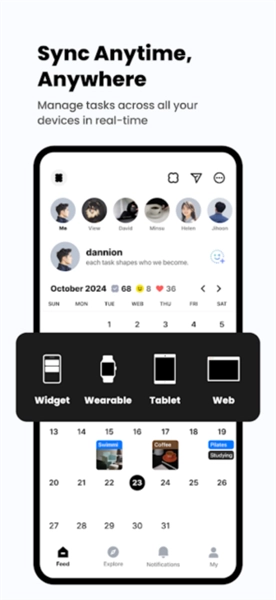4、支持手机、平板、PC、手表等多终端设备间的数据同步,并提供桌面小组件功能。