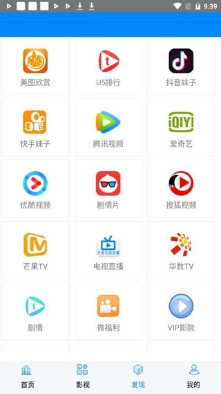 4、进入发现即可观看到多平台展示的影视