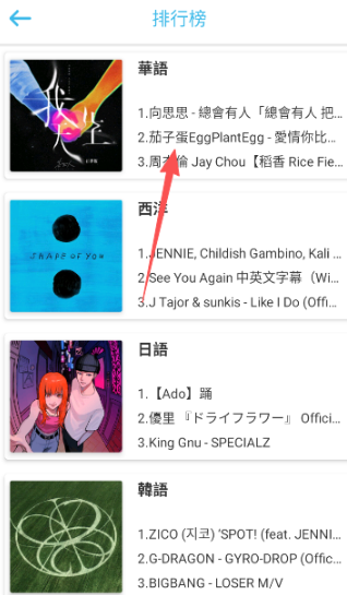 2、选择歌曲资源播放时,可直接点击歌手头像,或是在排行榜单中进行搜索查找。