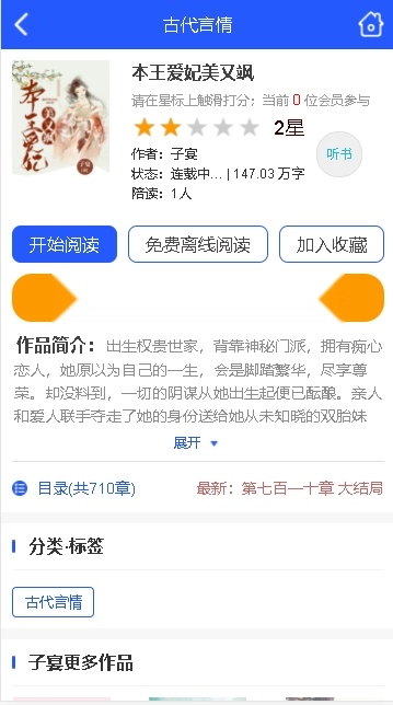 * 阅读功能:可提供翻页、滚动、听书等多种阅读模式供选择。