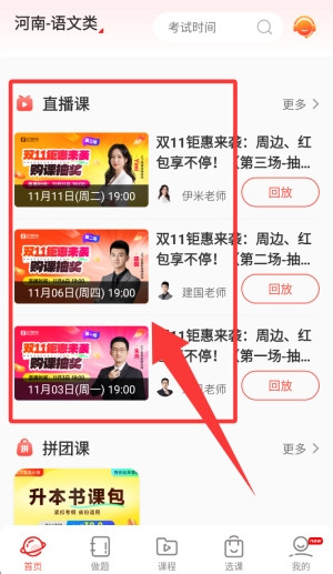 课程学习模块包含录播和直播内容,还具备进度跟踪、反复观看等实用便捷的功能。
