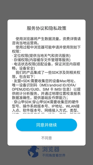 1、在本站安装并打开微米浏览器最新版,点击同意;