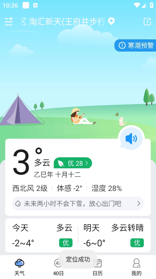 2、然后软件会根据用户的位置自动切换天气