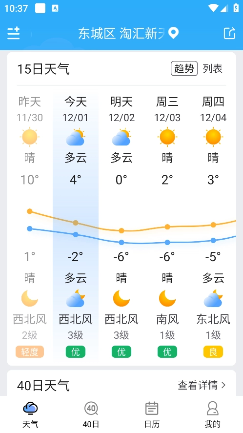 3、下滑页面还能够查看15日天气预测