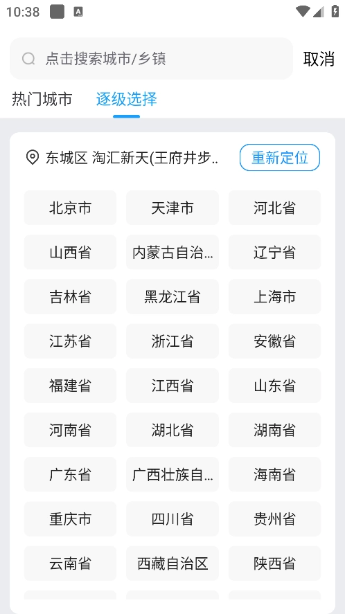3、然后可以看到各种城市
