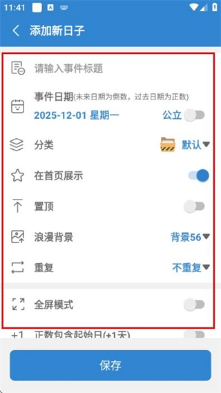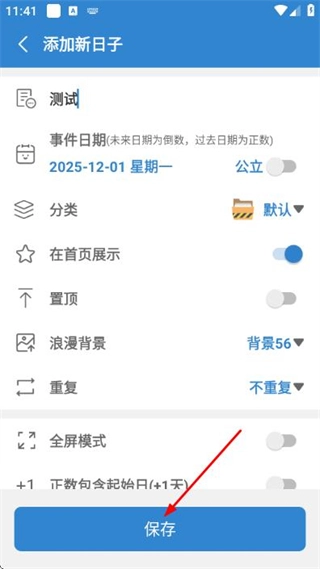 3、把信息填写完毕后,点击页面底部的保存按钮,就能完成新日子的添加操作了。