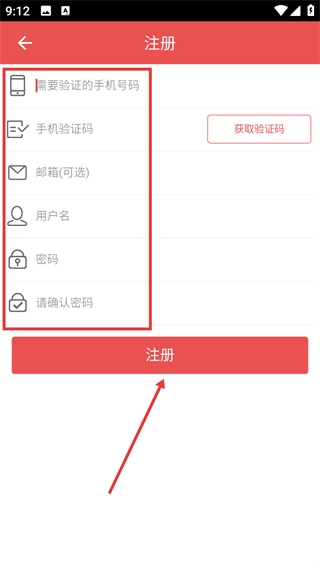 4、在注册页面按顺序填写手机号、验证码、用户名等信息,点击【注册】按钮即可完成账号注册。