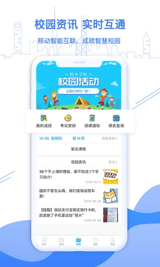 1、校园热点、头条新闻、学校通知、专门课程学习等各类校园资讯,都能实时掌握。