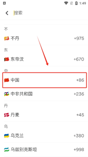 3、号码地址选择中国(如图)