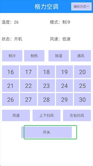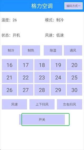 4、接下来点击开关按钮,观察空调是否有反应,若有反应则说明连接成功