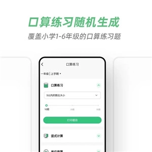 4、口算练习可随机生成,覆盖小学1至6年级的口算练习题。
