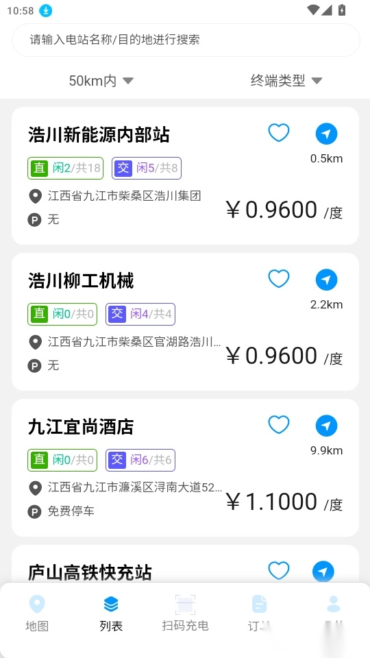 3. 进入列表页面后,可查找附近的充电站,随后点击进入下一步操作