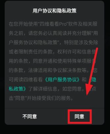 1.启动四维看看pro应用,首先需同意用户协议与隐私政策;