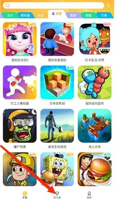 进入游戏平台后,首页会展示经营类、战斗类、跑酷类等各类游戏推荐;底栏则设有最新的热门游戏排行榜,榜单收录的均为近期备受欢迎的游戏。