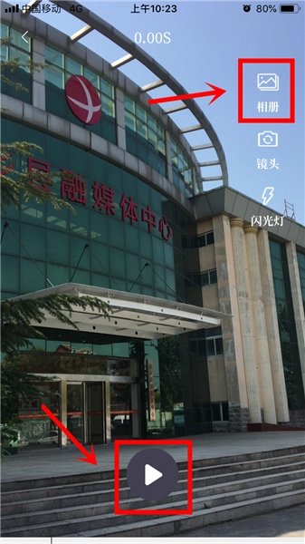 3.点击拍摄按钮录制短视频,也可以点击右上角的相册,从中选取手机里已保存的视频。
