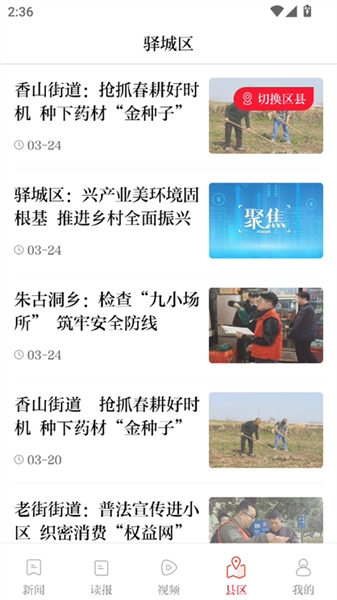 4、进入区县界面后,我们可以查看到各个区县对应的新闻资讯。