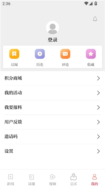 5、在“我的”界面中,这里整合了订阅、历史、评论、收藏等一系列功能,不过这些功能需要登录后才能查看。