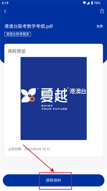 然后点击“获取资料”即可