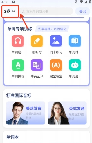 打开后,用户可以先设置自己的学习阶段,比如图中的三岁阶段。