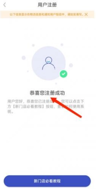 4、随后会出现【恭喜您注册成功】的提示,这意味着开店账号已经完成注册。