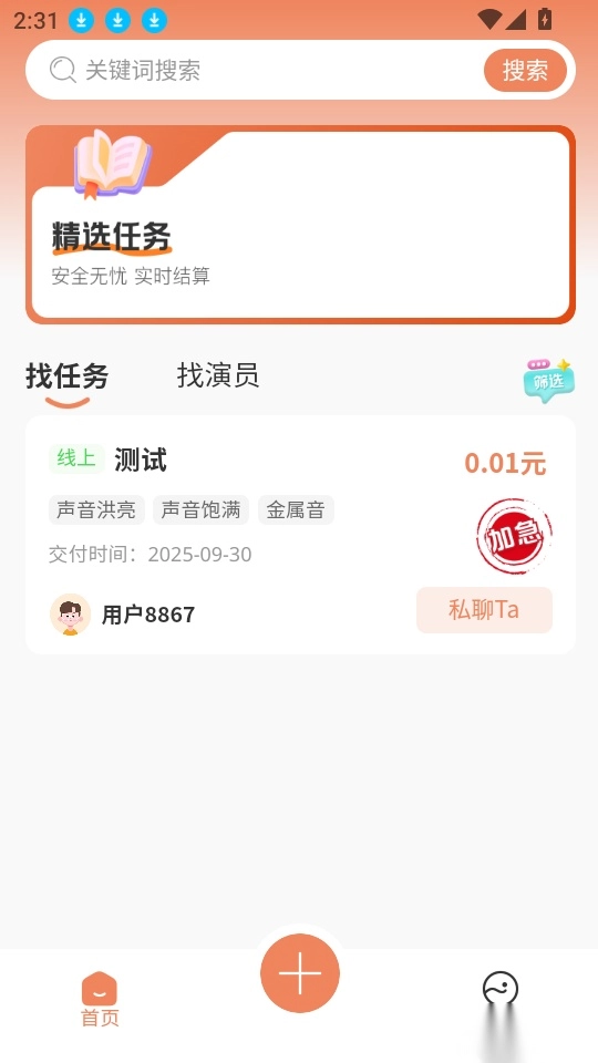 助力配音师实时对接任务需求,平台提供丰富精选任务的筛选功能,助你快速精准找到合适的任务。
