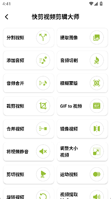 快剪视频剪辑大师是一款功能十分全面的视频剪辑软件,它配备了丰富的视频剪辑功能,像分割视频、提取图像、添加音频、裁剪视频、gif转视频、合并视频等,应有尽有,全部包含在内。虽然集成了这么多功能,它的软件体积仍然控制在60M以内,占用空间极小,非常精简,用来进行粗剪再合适不过了!