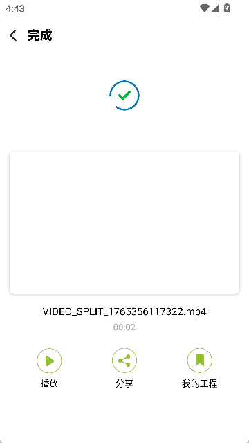 6.稍等片刻就能完成视频分割,完成后可以点击播放,也能将分割好的视频分享出去。