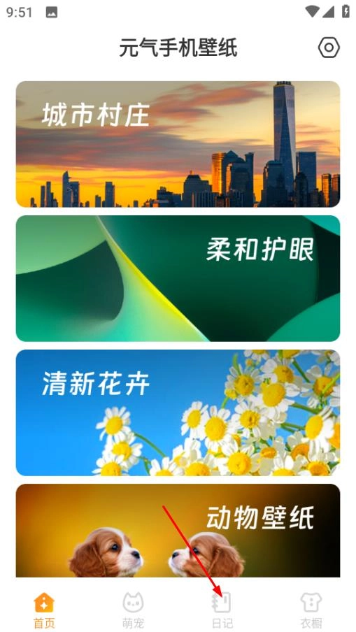 1、启动元气手机壁纸应用,点击页面底部的“日记”选项,即可进入日记页面。
