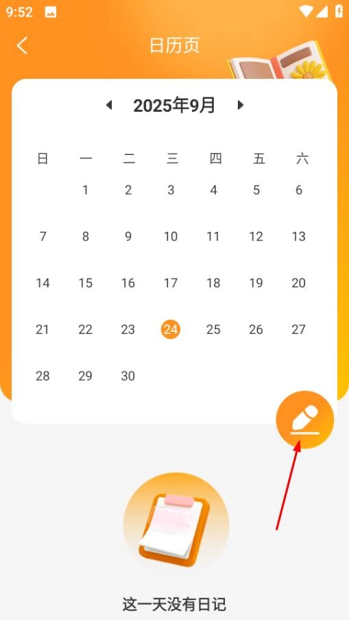 3、在日历页面,点击右下角的编辑图标,即可进入日记详情页面。
