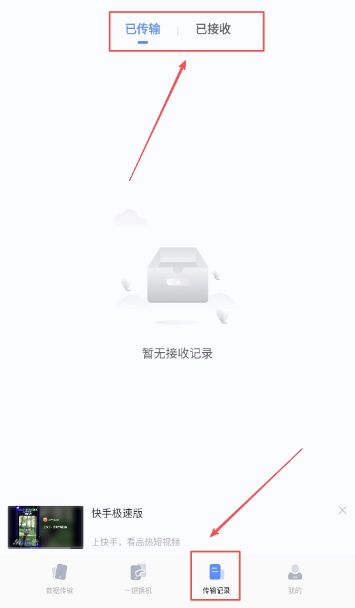 4、若要查看过往的传输情况,可在软件内找到传输记录页面并点击进入,在该页面中能清晰查看已传输和已接收的所有文件列表。