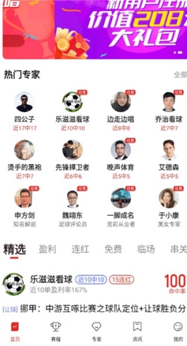 3、近千位专家为你深度解析赛事,每日精选出战绩出色的专家为你提供参考。