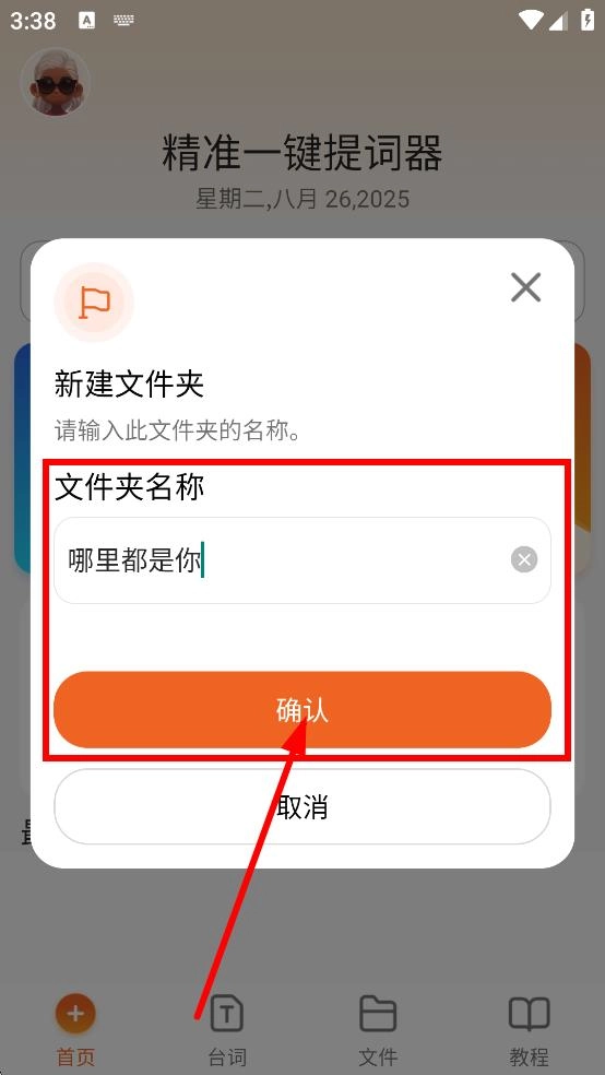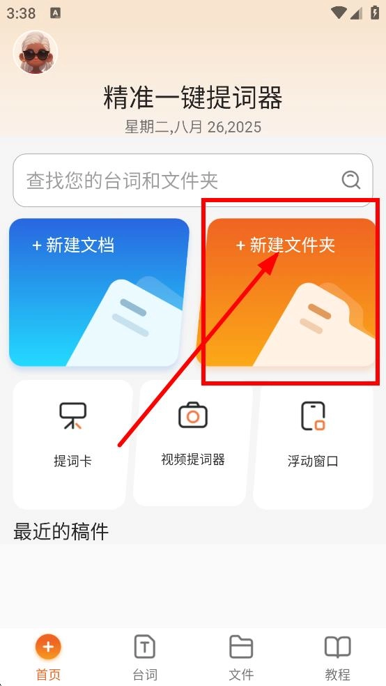 在精准一键提词器的首页,点击“+新建文件夹”按钮,即可进入新建文件夹的操作界面。