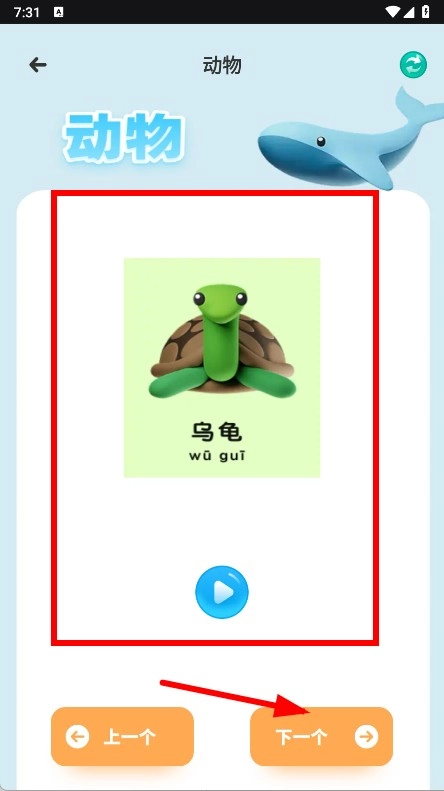 查看乌龟的图文内容,点击下一个按钮。