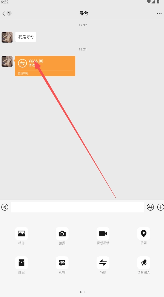 4、进入模拟聊天的场景后,就能看到对方给你的转账信息了。