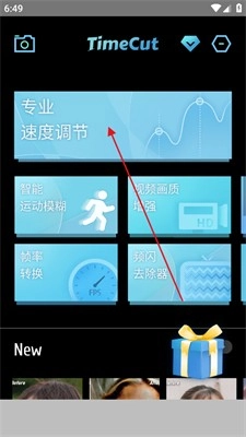1、启动timecut应用,找到并选择【专业速度调节】这一功能选项。