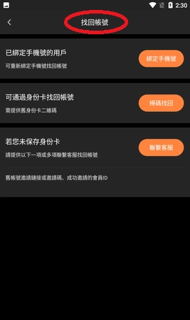 2、按照下列步骤找回账号即可。