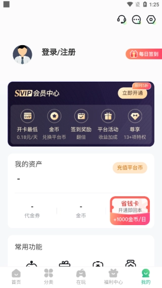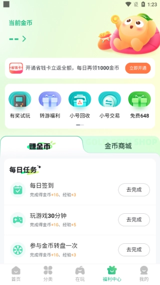 在福利中心页面既能赚取金币,也能前往金币商城进行兑换。
