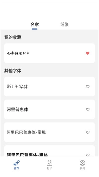 1、启动练字临帖大师免费版后,在名家专区能够浏览各类字体,遇到心仪的还能收藏,点击对应字体就能开始学习。