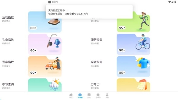 3、工具箱页面展示了各类生活指数,一目了然。
