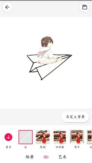 6、那么问题来了,要是想让这个人物切换到另一个场景该怎么做呢?想必你已经留意到图片右下角的“自定义背景”选项了吧?没错,点击它就能重新选择一张背景图,再把抠好的人物图放到新背景上,手动调整位置和大小。等调整到满意的效果后,可别忘了点击右上角的保存按钮哦~