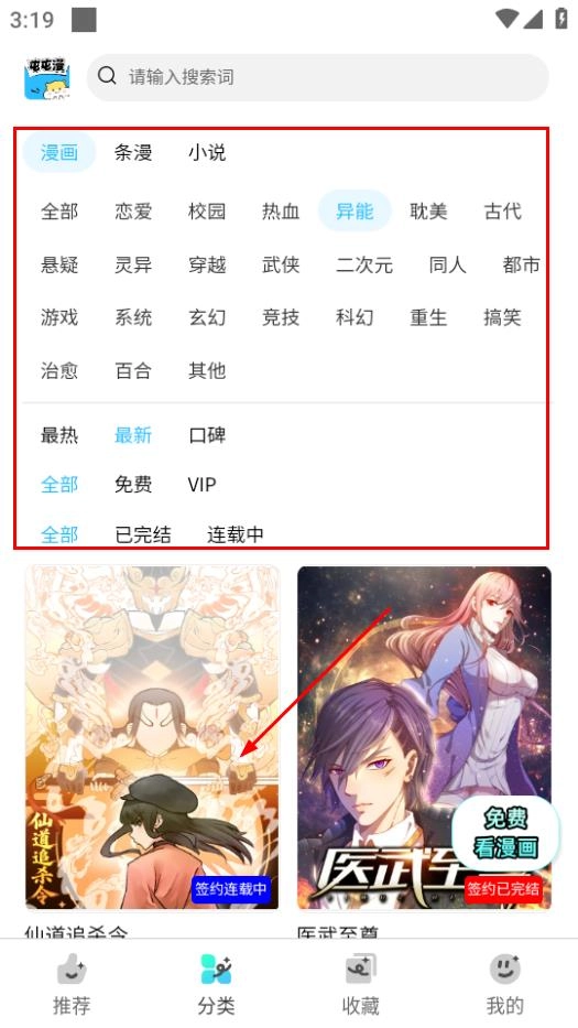 在分类页面筛选好条件后,点击“仙道追杀令”,即可进入该漫画的详情页面。