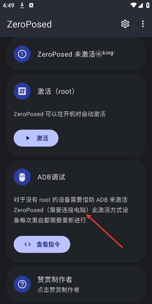 1、打开后就能进入激活界面开始使用,虽然里面提供了root模式的激活选项,但通常不建议采用这种方式——毕竟用户选择shizuku或其魔改版ZeroPosed,初衷就是为了避免root操作。因此一般优先使用第二种adb调试激活:如果用户手机系统是安卓12及以上,只需先进入开发者模式开启无线调试功能,再打开应用就会出现无线调试的激活渠道。这种激活流程和shizuku一致,过程中会生成配对码,用户输入该配对码即可完成激活。
