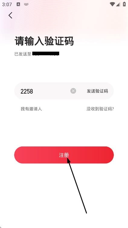 在验证码输入界面,输入获取到的验证码,即可完成注册流程。
