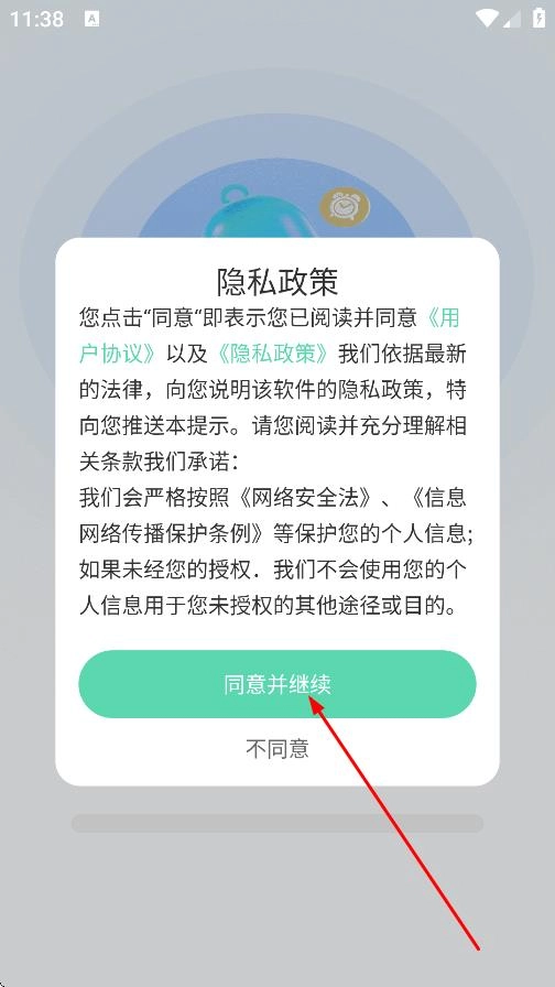 在隐私政策弹窗中,点击同意并继续,进入主页面。