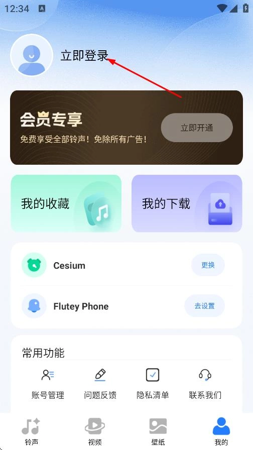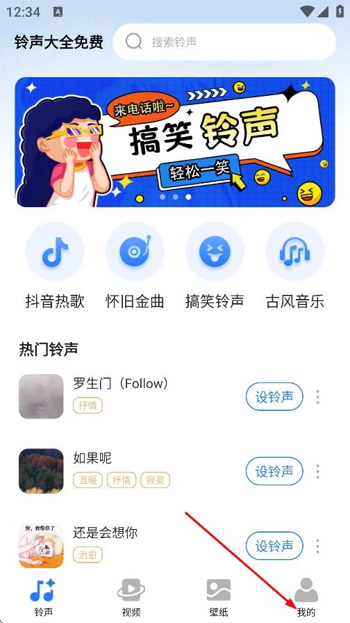 在铃声大全免费主页面,点击我的,进入个人页面。