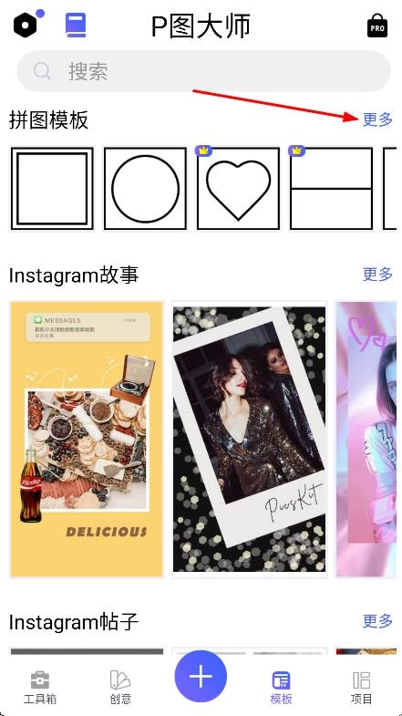 点击拼图模板右侧的更多,进入拼图模板选择页面。