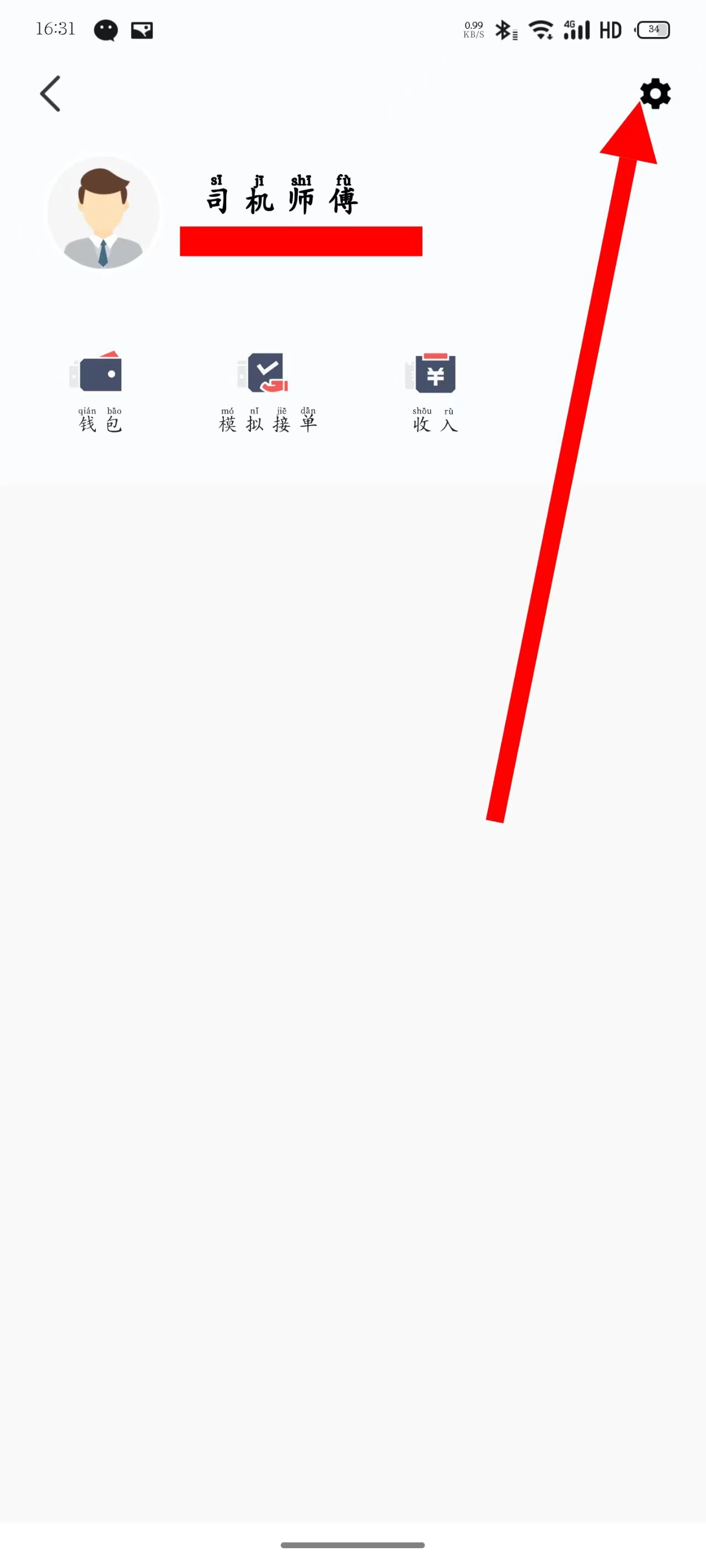 打开旗妙出行司机端聚合版,点击左上角头像图标。